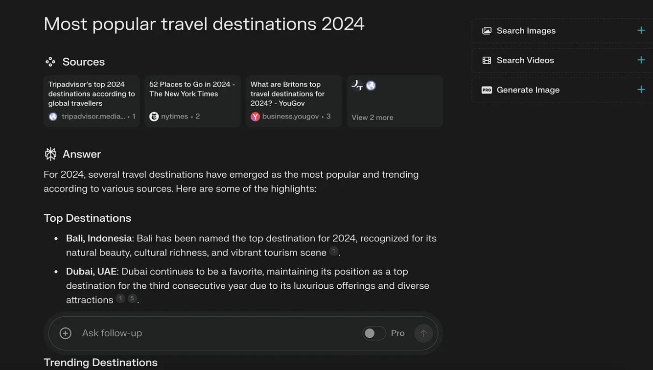 If you haven’t tried it yet, I’d really recommend checking out the existing AI search engine: Perplexity. (Or Answer Engine, as they call it.)